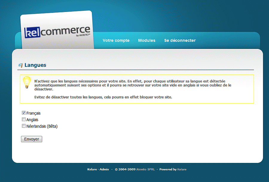 Et "voila", votre site n'existe plus qu'en français dès à présent, mais vous pouvez toujours réactiver la version anglaise par la suite.