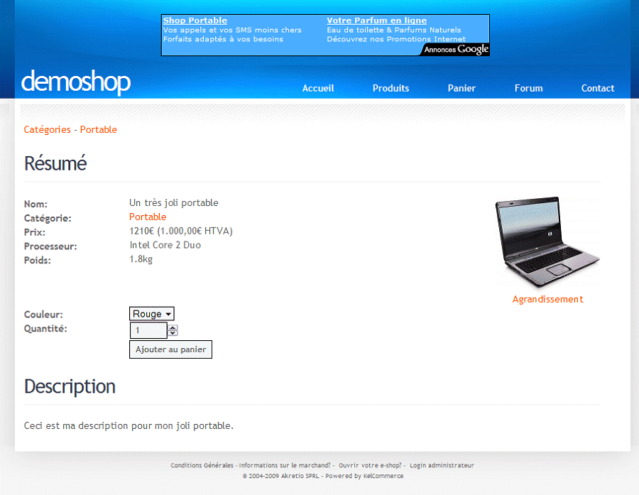 De retour sur le site client, le poids fait maintenant partie des caractéristiques.